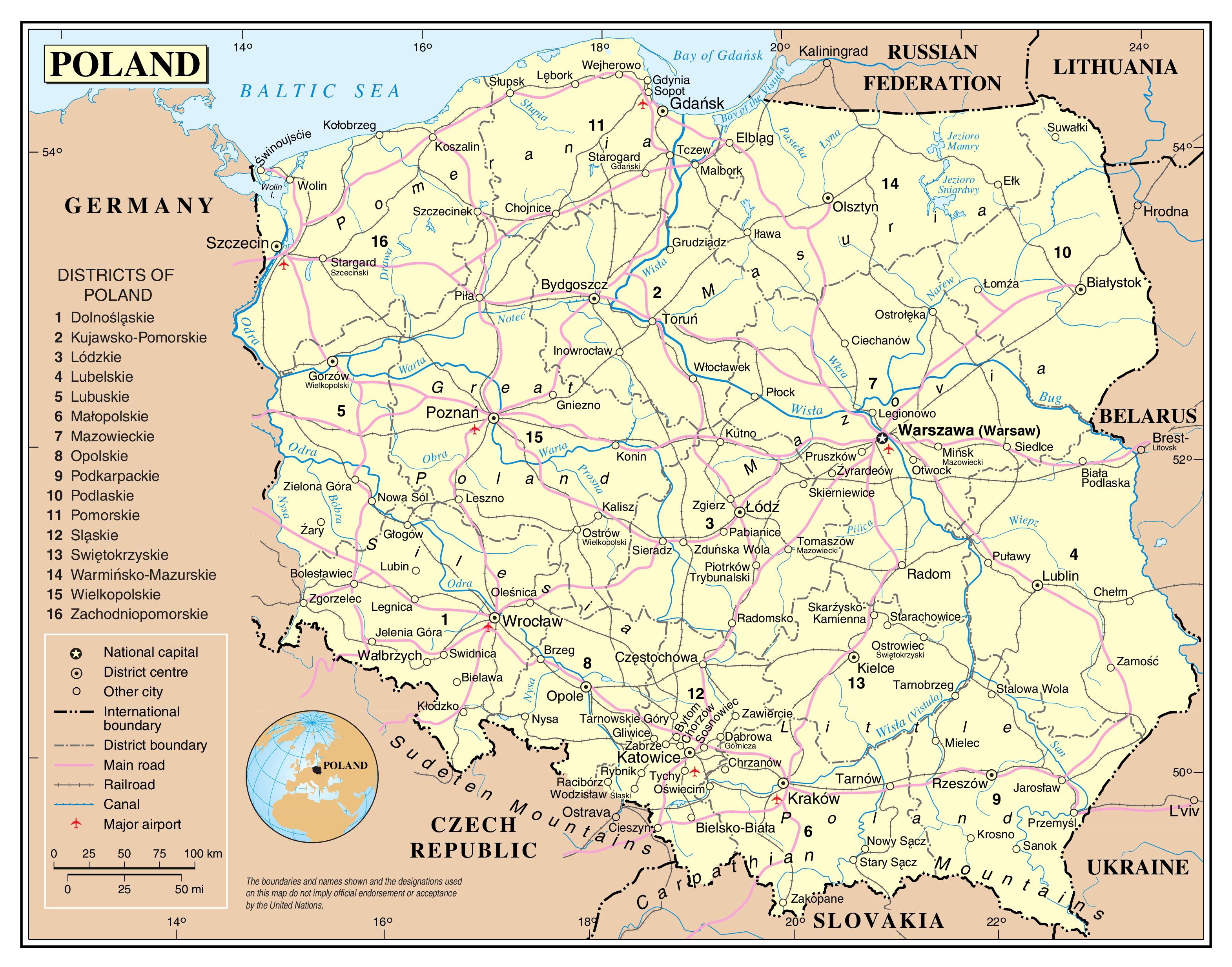 ポーランド輸送地図
